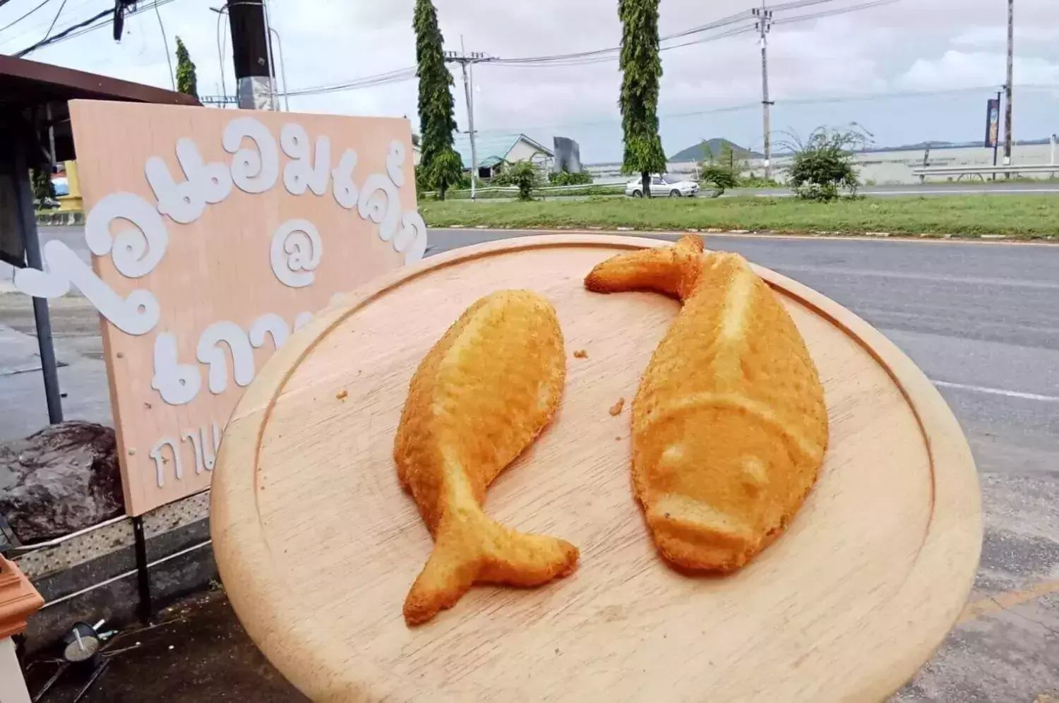 ทุกอย่างเริ่มต้นขึ้นเมื่อ ปลากะพงสามน้ำแห่งทะเลสาบสงขลา ได้รับการยอมรับในฐานะวัตถุดิบ GI ชื่อเสียงของมันดึงดูดนักเดินทางจากทั่วสารทิศให้มาเยือนเกาะยอ และเมื่อพวกเขามาถึงร้าน I AM CAKE คำถามที่ได้ยินบ่อยครั้งคือ “มีของฝากที่ทำจากปลากะพงไหมครับ/คะ?” เสียงนั้นแผ่วเบา แต่กลับก้องในใจของคุณจิ้มไม่รู้จบ ประกอบกับโจทย์ที่ท้าทายจากมหาวิทยาลัยราชภัฏสงขลาที่อยากเห็นนวัตกรรมจากของดีประจำถิ่น
