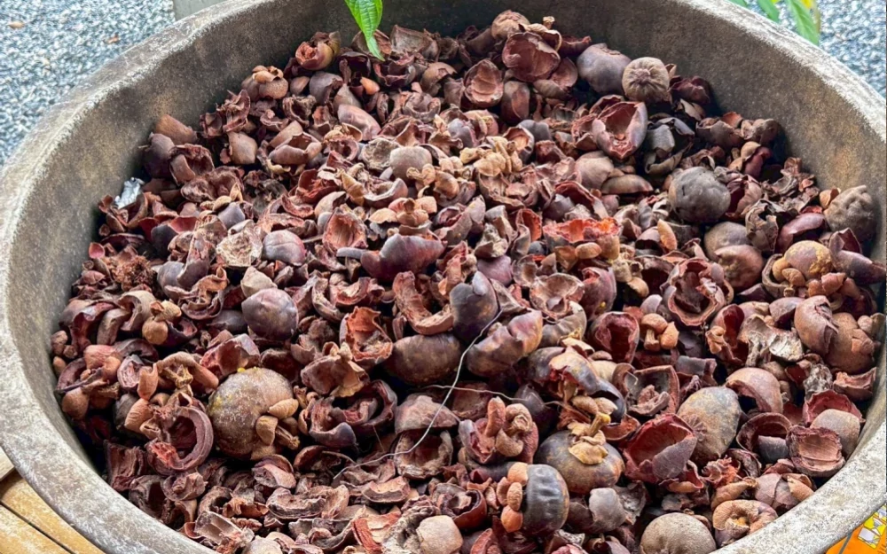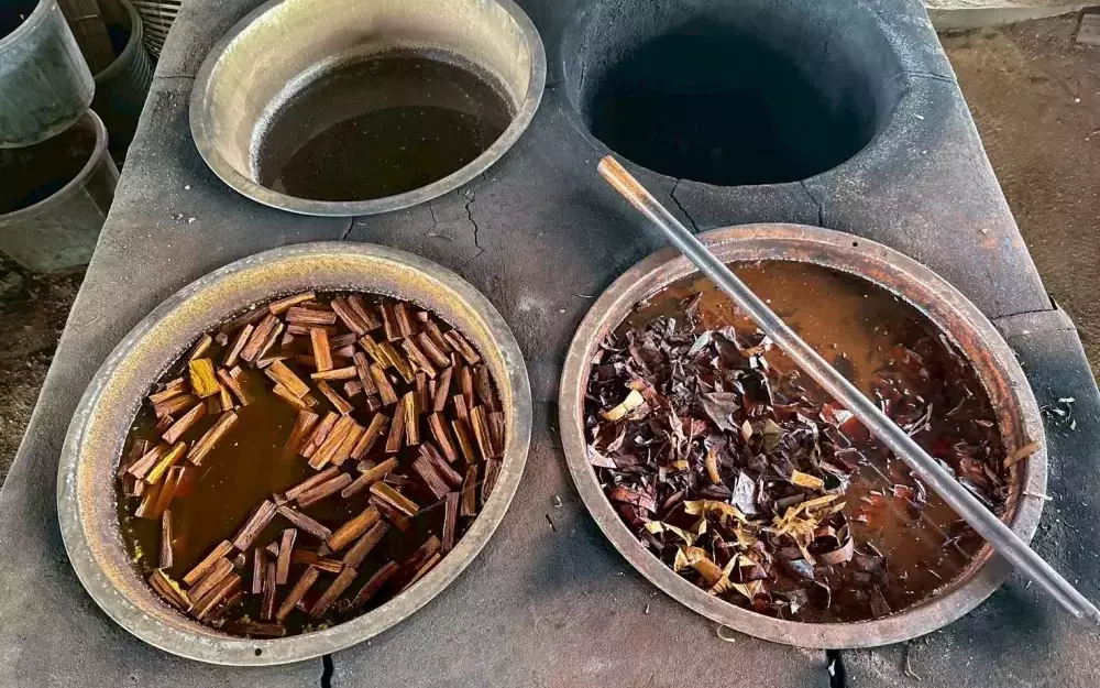 เอกลักษณ์ของผ้าคีรีวงอยู่ที่โทนสี — สีที่บอกเล่าธรรมชาติของที่นี่โดยไม่ต้องเอื้อนเอ่ย สีน้ำตาลอมส้มจากเปลือกมังคุด สีเทาหม่นจากใบยูคาลิปตัส สีเหลืองนวลจากแก่นขนุน ทุกสีล้วนเกิดจากวัตถุดิบธรรมชาติ 100%ที่หาได้ในหมู่บ้าน ไม่ต้องพึ่งพาการสั่งซื้อจากที่ไกล มันคือ ความซื่อตรงต่อผืนดินและคือสิ่งที่ทำให้ใครเห็นเพียงแวบเดียวก็รู้ทันที — นี่คือ “ผ้าแห่งคีรีวง” ที่หายใจเอาอากาศบริสุทธิ์ของขุนเขาเข้าไปในทุกเส้นใย