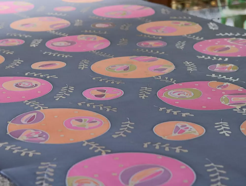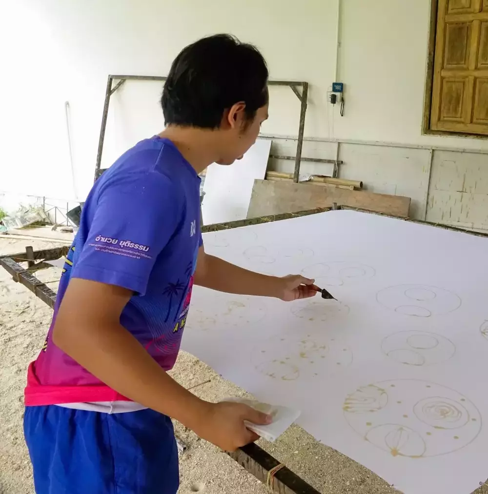 “เราวาดจากความรู้สึกครับ มันไม่มีผืนไหนเหมือนกันเลย” — คุณเพียวเล่าพร้อมรอยยิ้มที่สะท้อนความภาคภูมิใจ ผ้าทุกผืนจึงเปรียบเสมือนบันทึกอารมณ์ของศิลปิน ไม่ใช่เพียงสินค้าชิ้นหนึ่ง แต่คือผลงานศิลปะที่มีเพียงหนึ่งเดียวในโลก