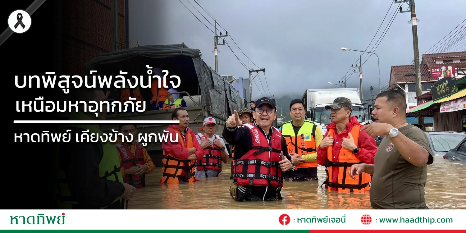 แม้พายุจะผ่านไปแล้ว แต่เรารู้ดีว่าความเจ็บปวดและความเสียหายยังคงอยู่ สำหรับหลายครอบครัว ฟ้าหลังฝนอาจยังไม่ได้สดใสในทันที บางบ้านยังต้องฟื้นฟู บางคนยังต้องเริ่มนับหนึ่งใหม่ แต่สิ่งที่มหาอุทกภัยไม่อาจพัดพาไปได้ คือรากฐานของ “ความผูกพัน” ที่เรามีต่อกัน เหตุการณ์นี้พิสูจน์แล้วว่า ไม่ว่าหนทางข้างหน้าจะยากลำบากแค่ไหน หาดทิพย์จะยังคงมุ่งมั่นทำหน้าที่ของเราในฐานะเป็นส่วนหนึ่งของสังคมภาคใต้ เป็นเพื่อนที่คอยประคับประคองและเดินเคียงข้างกับพี่น้องคนใต้ทั้งในยามสุขและยามทุกข์ เพื่อร่วมก้าวไปสู่วันที่ดีกว่าด้วยกัน ตามปรัชญาการทำงานที่ว่า “หาดทิพย์ เคียงข้าง ผูกพัน” ที่เรายึดมั่นเสมอมาและจะยึดมั่นตลอดไป
