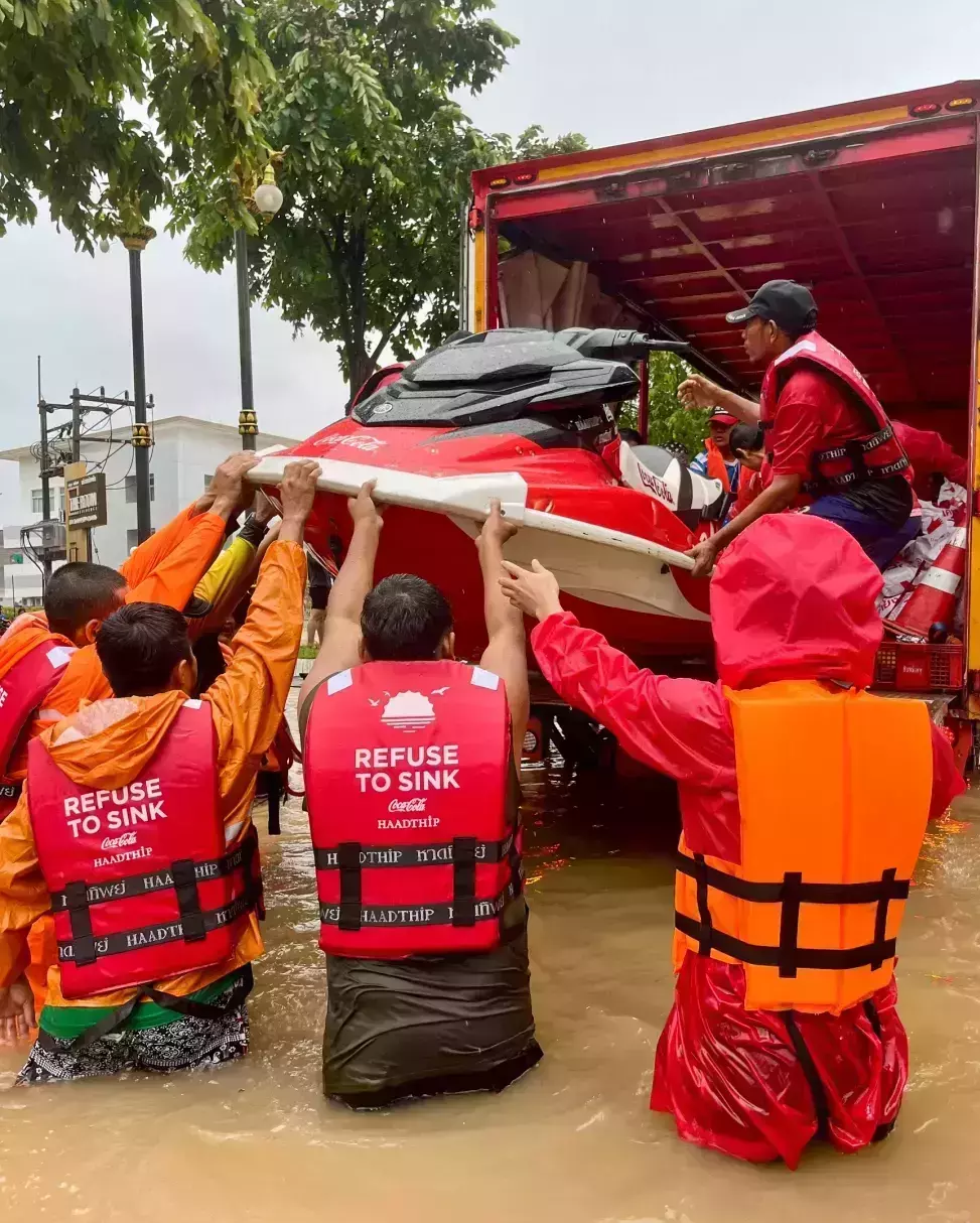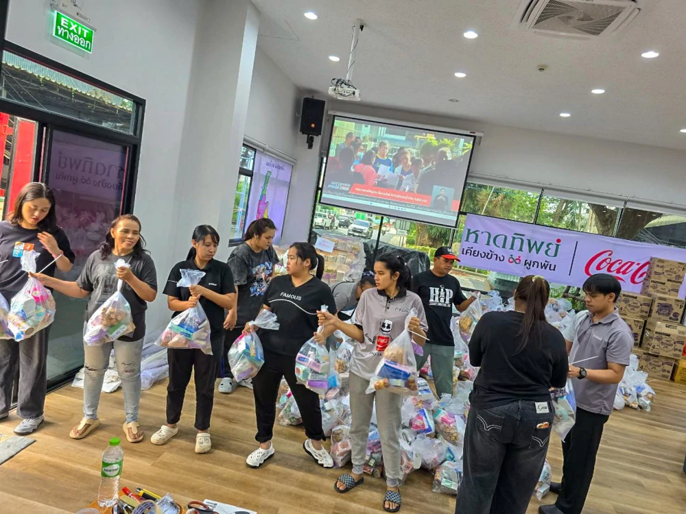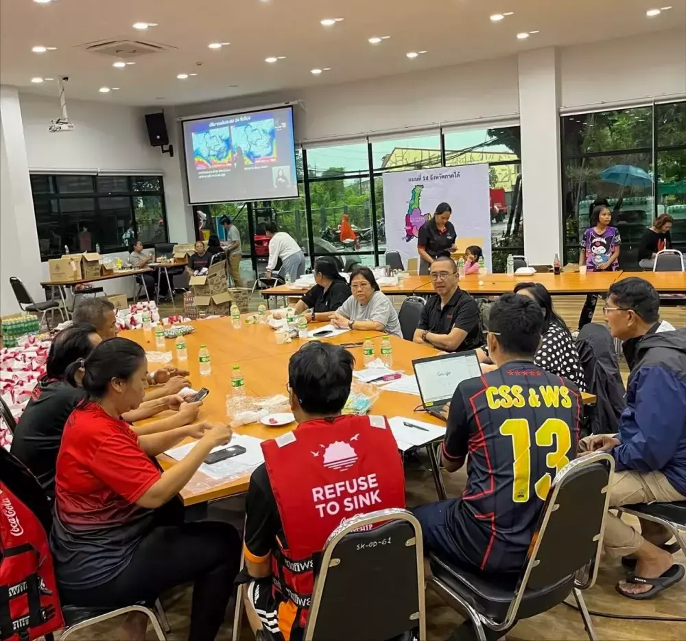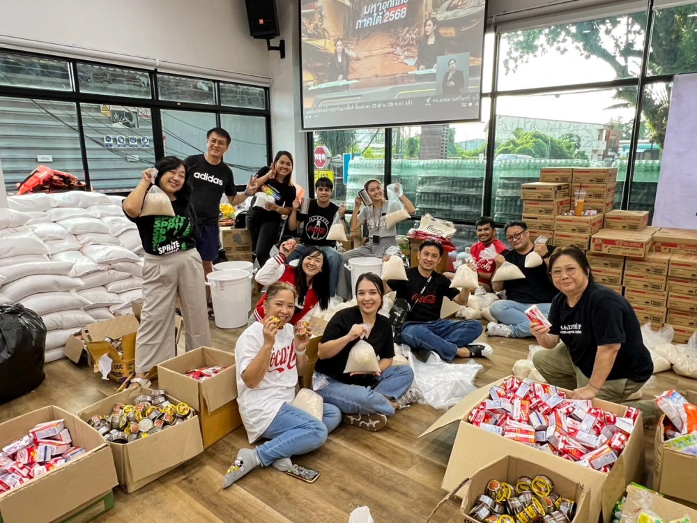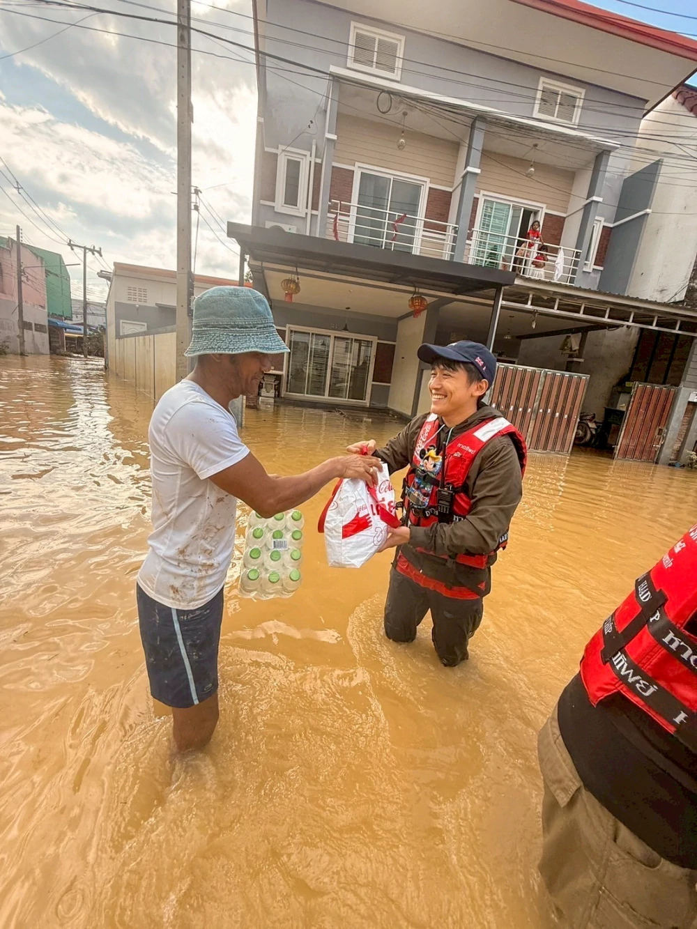 ทันทีที่ภาพน้ำท่วมปรากฏบนหน้าจอ มัท—หัวหน้าทีมสนับสนุนจากโรงงานพุนพิน จ.สุราษฎร์ธานี—ตัดสินใจรวบรวมทีมทันที แม้ฝนจะยังตกหนัก ถนนหลายช่วงถูกตัดขาด แต่เธอและทีมไม่ลังเลแม้เสี้ยววินาที เพราะในหัวใจของพวกเขามีเพียงอย่างเดียว—“เพื่อนเรากำลังรอ”