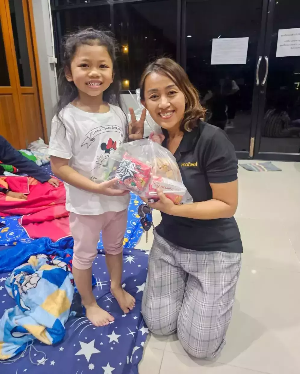 แต่สิ่งที่แอนใส่ใจมากที่สุด… ไม่ใช่แค่เรื่อง “ที่อยู่” แต่คือ “ที่วางหัวใจ” เธอเล่าว่าในคืนแรก ผู้ประสบภัยหลายคนยังมีแววตาตื่นกลัว เด็ก ๆ บางคนจับแขนแม่แน่นเพราะไม่รู้ว่าบ้านจะยังเหลืออยู่ไหม ขณะที่ผู้สูงอายุบางคนเอาแต่มองโทรศัพท์ที่แบตหมดราวกับกำลังเฝ้ารอข่าวสำคัญที่ไม่รู้จะมาเมื่อไหร่