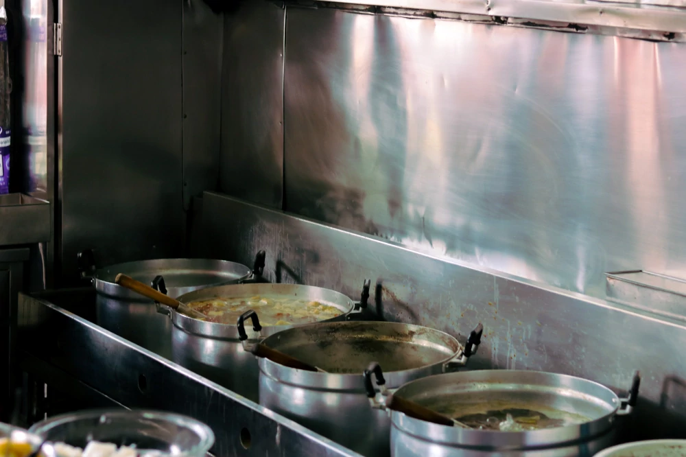 หม้อน้ำซุปกระดูกหมูใบใหญ่ถูกตั้งไฟ เคี่ยวต่อเนื่องหลายชั่วโมง เพื่อดึงความหวานตามธรรมชาติออกมาอย่างช้า ๆ และเคล็ดลับสำคัญที่ทำให้น้ำซุปของยกเข่งมีมิติ คือการ ไม่ใช้น้ำตาลทราย แต่เลือกใช้น้ำตาลเคี่ยวจากน้ำตาลมะพร้าวแท้ ให้ความหวานหอมละมุน ซับซ้อน และไม่กลบตัวตนของวัตถุดิบอื่น