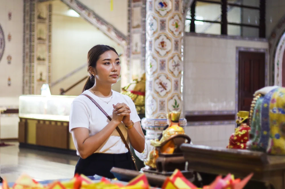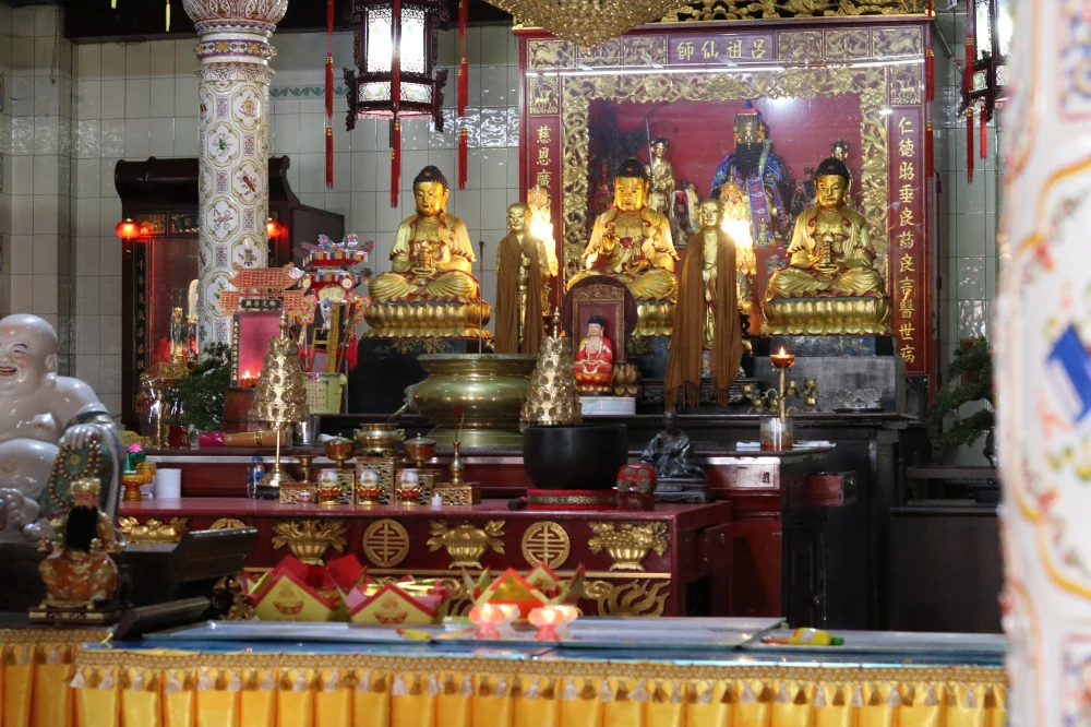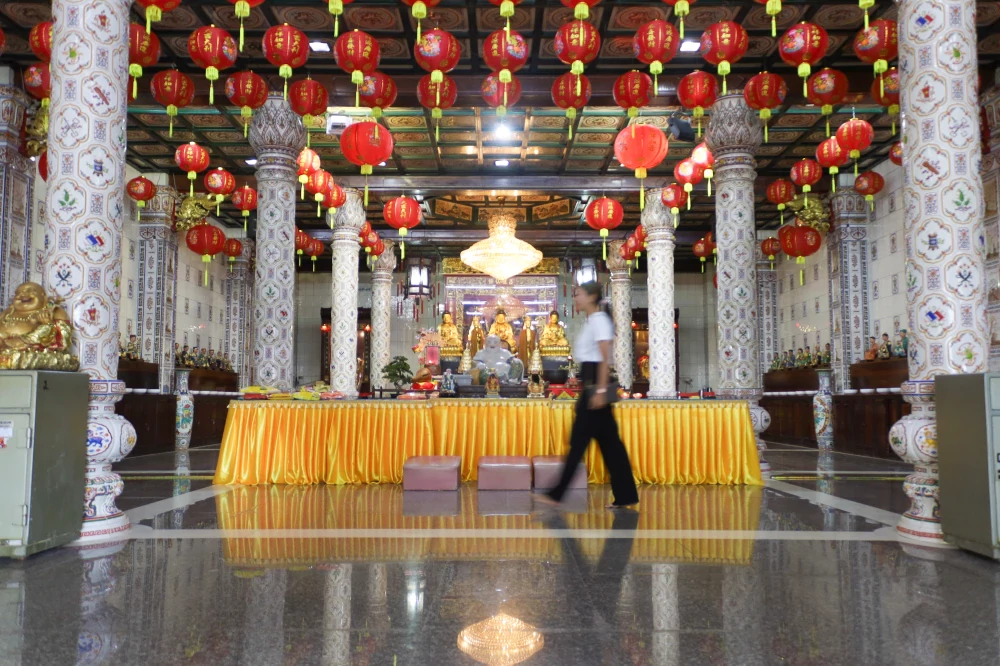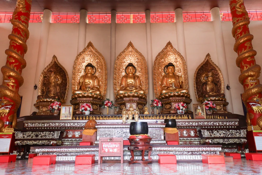 สถาปัตยกรรมไทย–จีนที่ผสมผสานกันอย่างวิจิตรบรรจง ทุกลวดลาย ราวกับตั้งใจชวนผู้มาเยือนให้ค่อย ๆ ลดความเร่งรีบ และเปิดพื้นที่เงียบ ๆ ให้หัวใจได้พักหายใจ แต่ภายใต้หลังคาสูงตระหง่าน ยังมีความงดงามที่หลายคนอาจมองข้าม…