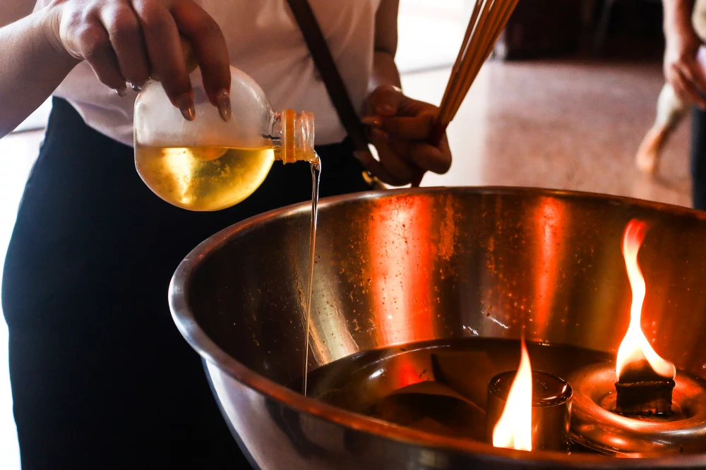 ผู้คนนิยมทำบุญด้วยการเติมน้ำมันตะเกียง เพื่อเติมแสงสว่างนำทางชีวิตให้ปัญญาเกิด ความคิดลื่นไหล ไม่ติดขัด ดั่งเปลวไฟที่โชติช่วงแต่ไม่ร้อนรน หรือร่วมทำบุญ ถวายสังฆทานและผ้าไตรจีวร แด่พระสงฆ์ฝ่ายอนัมนิกาย จากนั้นกรวดน้ำอุทิศส่วนกุศล ให้แก่สรรพสัตว์ทั้งหลาย
