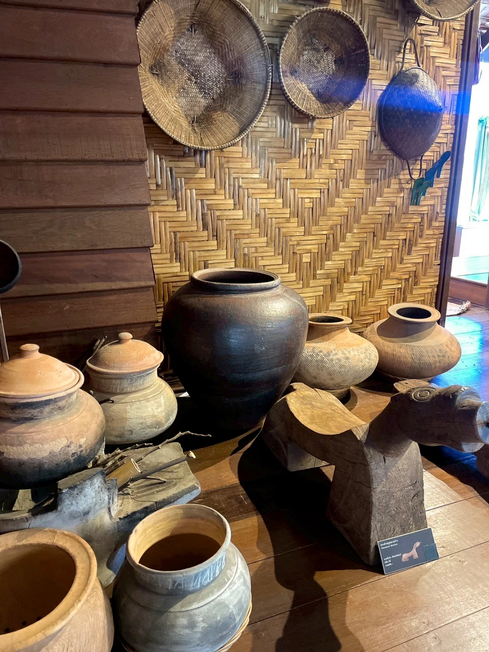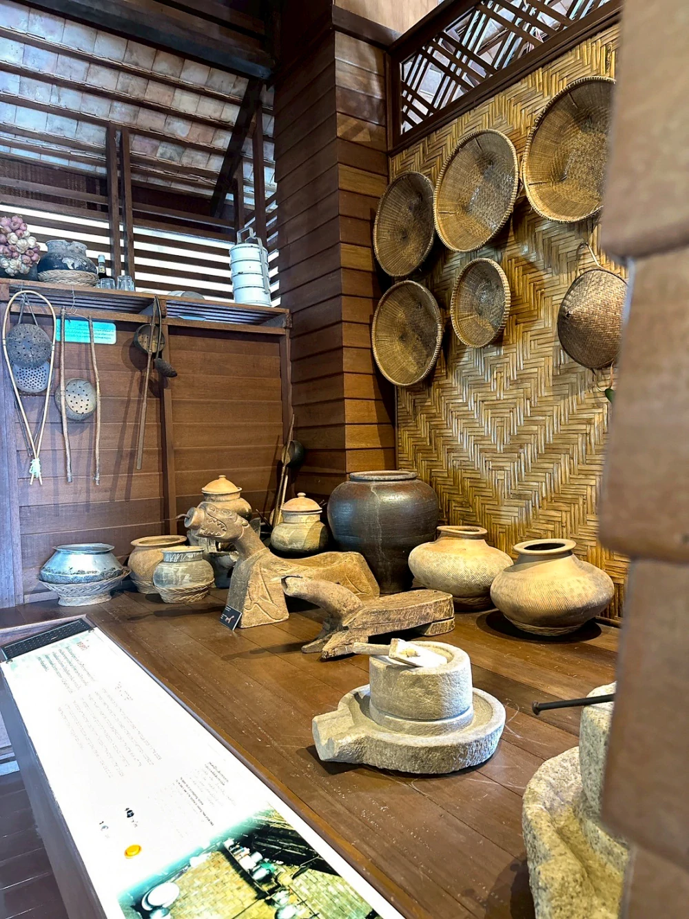 - ประติมากรรมในครัวเรือน: ในห้องเรือนชานที่จำลองบ้านเก่า เราจะได้พบกับกระต่ายขูดมะพร้าว โม่หิน หรือกระออมใส่น้ำ สิ่งของเหล่านี้คือ ประติมากรรมเพื่อชีวิตที่ร่องรอยสึกกร่อนของมันคือบทกวีที่บอกเล่าเรื่องราวการหล่อเลี้ยงชีวิตผู้คนมานับไม่ถ้วน