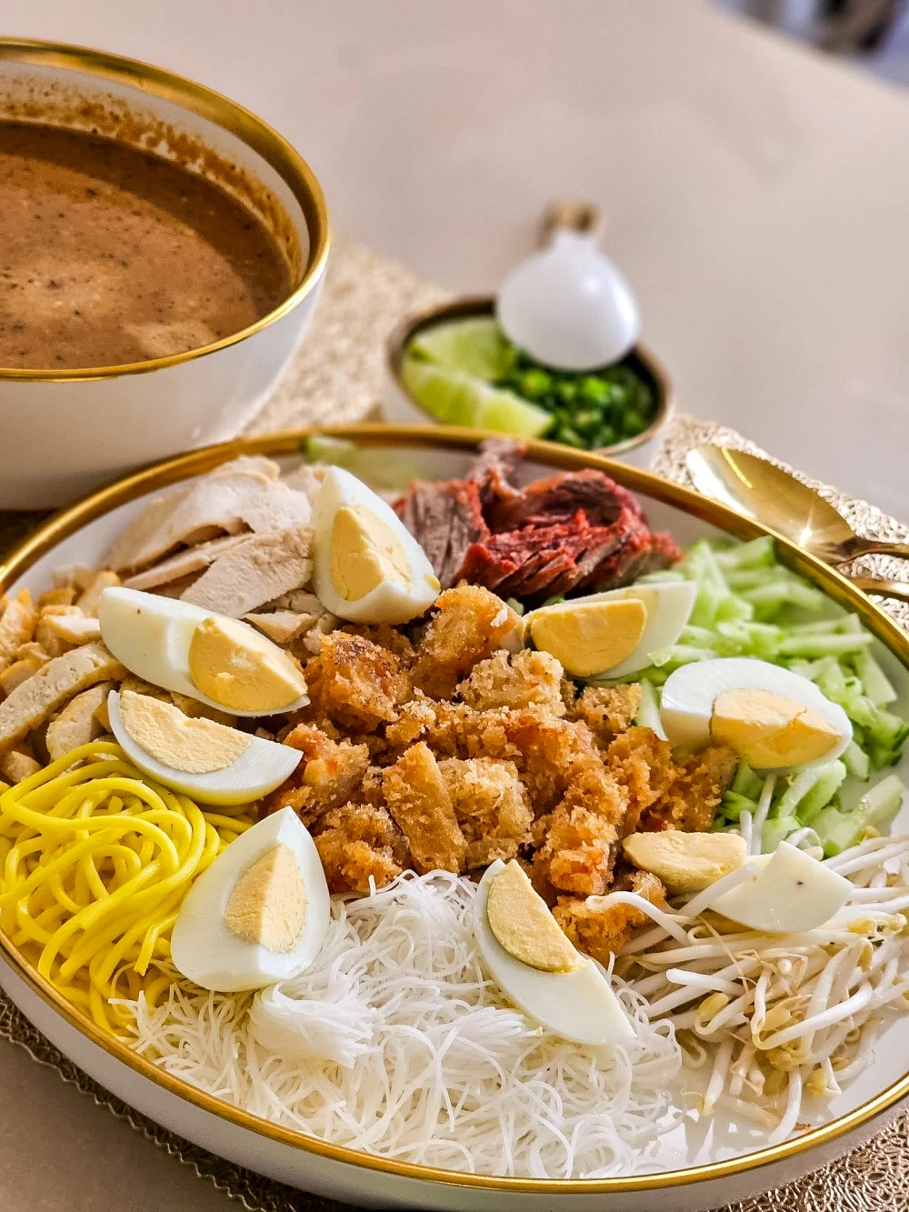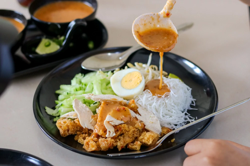 เมื่อราดลงบนเส้นหมี่ เคียงด้วยถั่วงอกกรุบกรอบ แตงกวา ไข่ต้ม และเนื้อสัตว์ที่ปรุงสุกพอดี ไม่ว่าจะเป็นเนื้อวัวหรือเนื้อไก่ กลิ่นหอมของน้ำราดและสีสันบนจานชวนให้ลิ้มลอง น้ำราดเข้มข้นหอมเครื่องเทศแบบมลายู เจือหวานเค็มกำลังดี ตัดด้วยรสเปรี้ยวอ่อน ๆ จากมะนาวและพริก เพิ่มรสกลมกล่อมลงตัว ในแบบที่คนใต้เรียกว่า รสชาติถึงใจที่ทำให้ผู้กินจำได้ไม่รู้ลืม ในแต่ละคำจึงไม่ใช่แค่รสอร่อยของอาหาร แต่คือรสของความตั้งใจ ความทรงจำและความภูมิใจของคนทำที่ยังคงรักษารสชาติอาหารพื้นบ้านไว้
