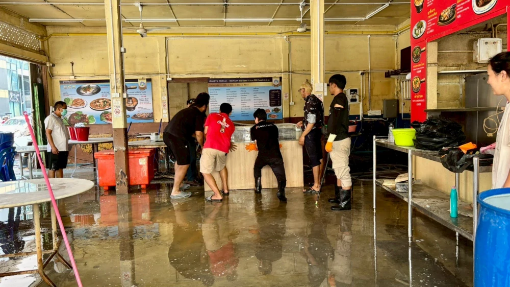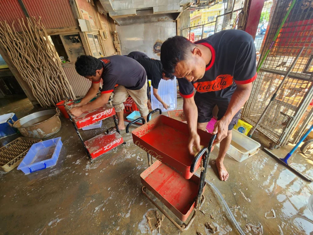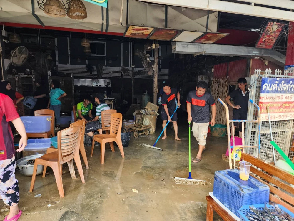 หลังสายน้ำเริ่มลดระดับลง ความเสียหายที่ปรากฏตรงหน้ากลับชัดเจนยิ่งกว่าเดิม คราบโคลนที่เกาะแน่นอยู่ตามพื้นและผนังร้าน คือบททดสอบกำลังใจของผู้ประกอบการรายย่อยจำนวนมาก และในช่วงเวลานั้นเอง พนักงานหาดทิพย์จากหลายสาขาได้อาสาลงพื้นที่ เพื่อช่วยฟื้นฟูร้านค้าของลูกค้าที่เคยเดินเคียงข้างกันมาอย่างยาวนาน