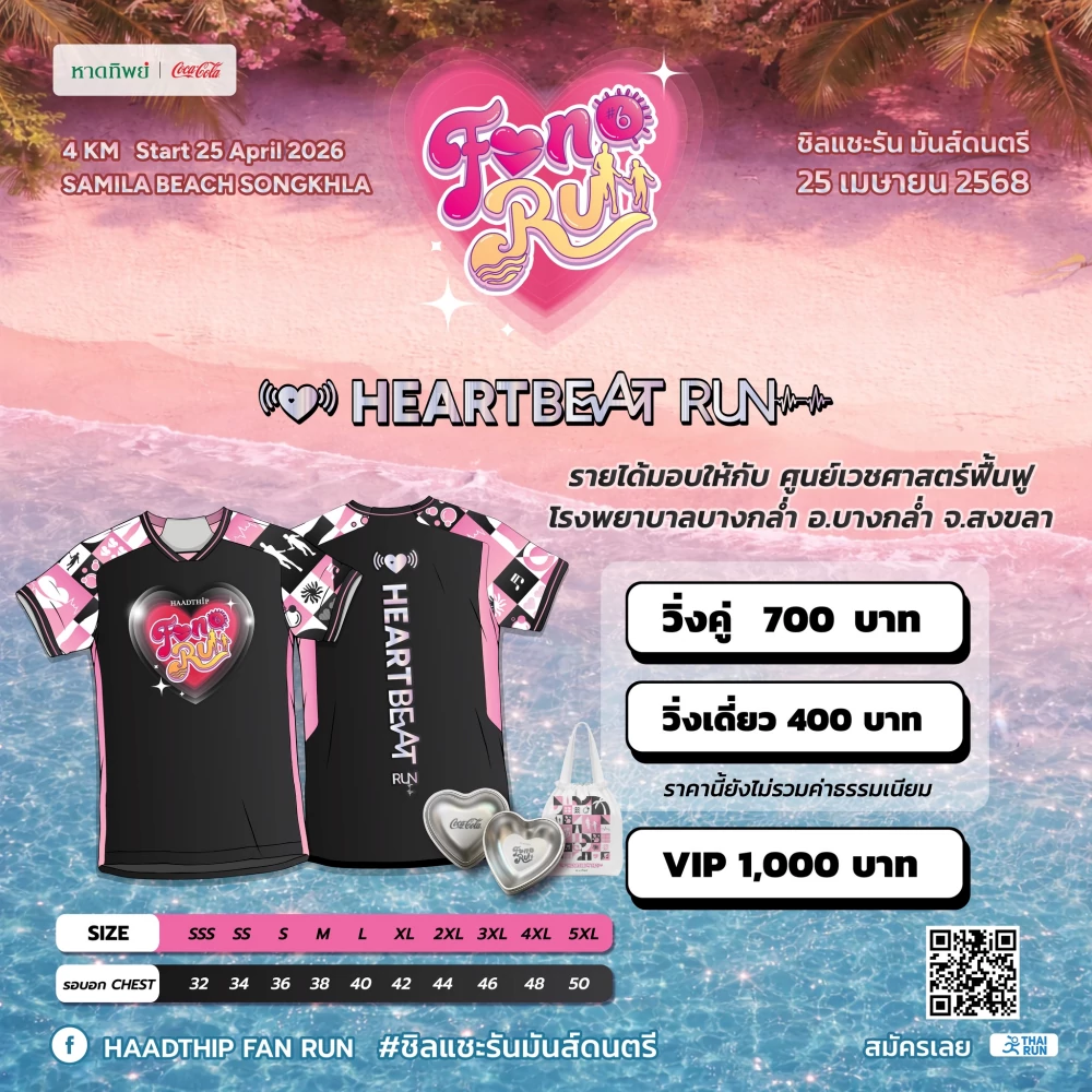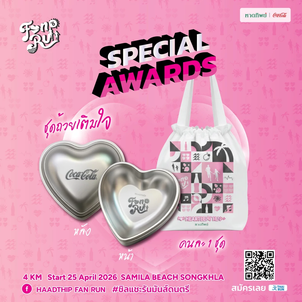 เราจึงอยากชวนทุกคน มาพักหัวใจไปด้วยกัน บนระยะทาง 4 กิโลเมตร ในเย็นวันเสาร์ที่ 25 เมษายน 2569 ปล่อยตัวเวลา 17:30 น. ให้เราได้เดิน หรือวิ่งช้า ๆ รับลมทะเลเย็น ๆ เลียบหาดสมิหลาและหาดชลาทัศน์ ท่ามกลางแสงสีทองของพระอาทิตย์ตก และเมื่อเข้าเส้นชัย เรายังเตรียมรอยยิ้มไว้รอต้อนรับ อาหารอร่อยจากกว่า 30 ร้านเด็ดในพื้นที่ เครื่องดื่มเย็นชื่นใจจากโคคา-โคล่า ดนตรีสดฟังสบาย และกิจกรรมลุ้นรางวัล ตั้งแต่ของที่ระลึกน่ารัก ๆ ไปจนถึงตั๋วเครื่องบินและที่พักระดับ 5 ดาว เพราะเราอยากให้วันแห่งการให้ เป็นวันที่เต็มไปด้วยรอยยิ้มและความสุขเช่นกัน
