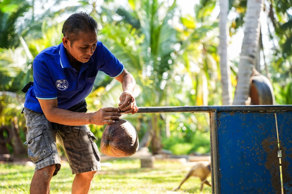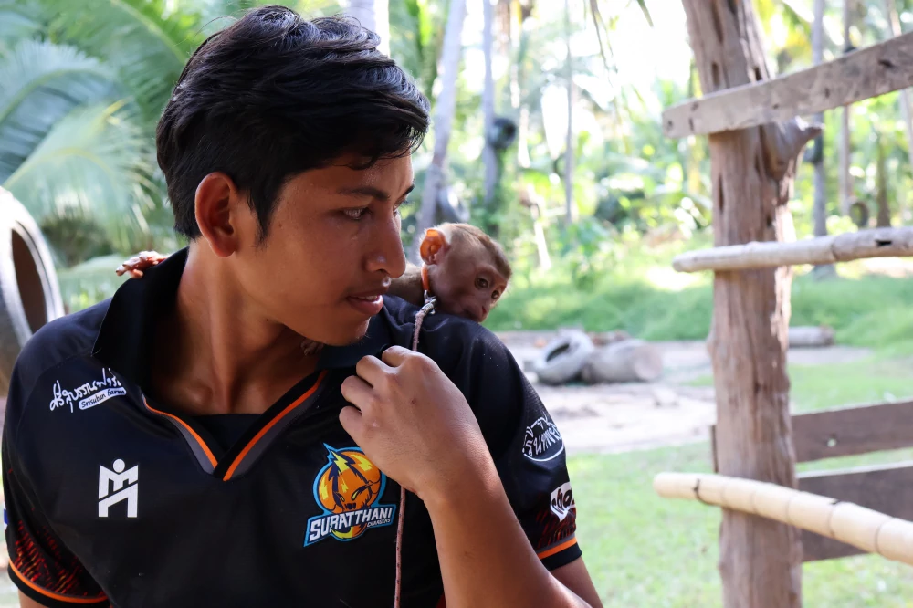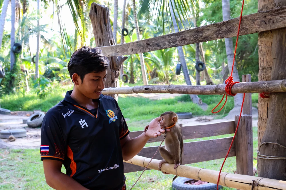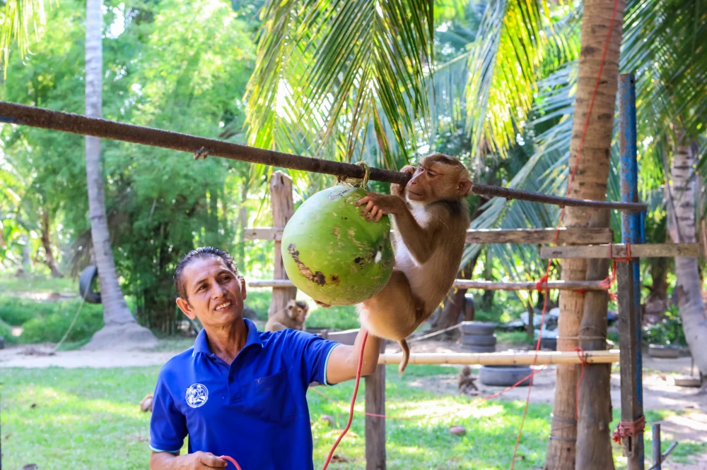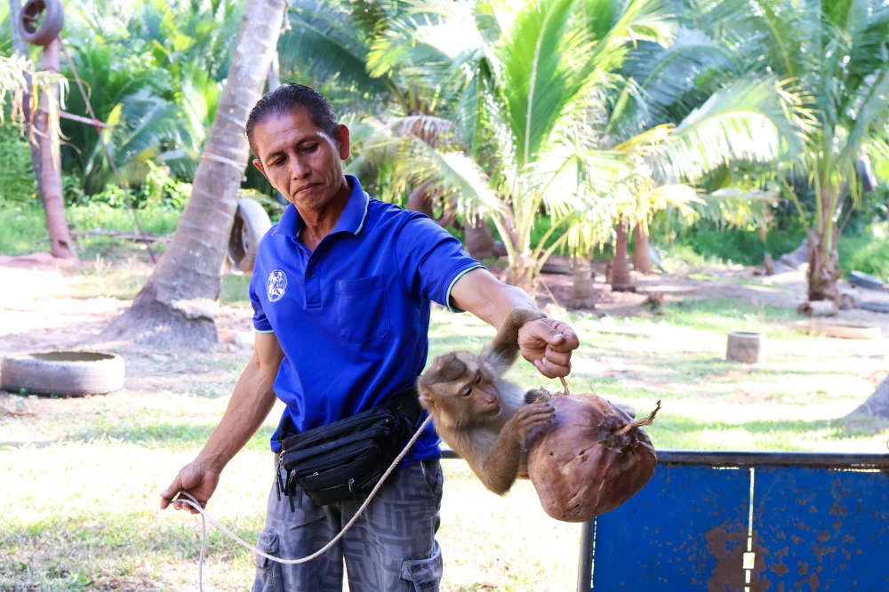 ทุกขั้นตอนของการฝึกจึงไม่ใช่เพียงการสอนให้ลิงทำงาน แต่เป็นการค่อย ๆ สร้างความคุ้นเคย ความเชื่อใจ และความปลอดภัย เพื่อให้ทั้งคนและลิงสามารถอยู่ร่วมกันในวิถีสวนมะพร้าวได้อย่างเหมาะสม
