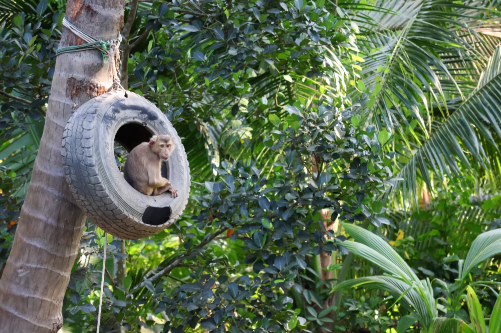 - ฝึกวิชาเอาตัวรอด: เพื่อให้ลิงสามารถดูแลตัวเองได้มากขึ้น โดยการฝึกให้มีสติในการแก้ปมเชือกด้วยตัวเองเมื่อเกิดการติดขัดบนยอดไม้
